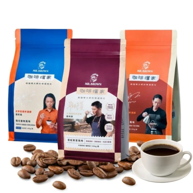 伯朗咖啡嚐家咖啡豆 450g x2 | 台灣 | 450g x 2袋 | 中深焙 | 袋裝 | 巧克力堅果香 | 摩卡壺、手沖 | 約599 | 價格實惠,口味選擇多元 |