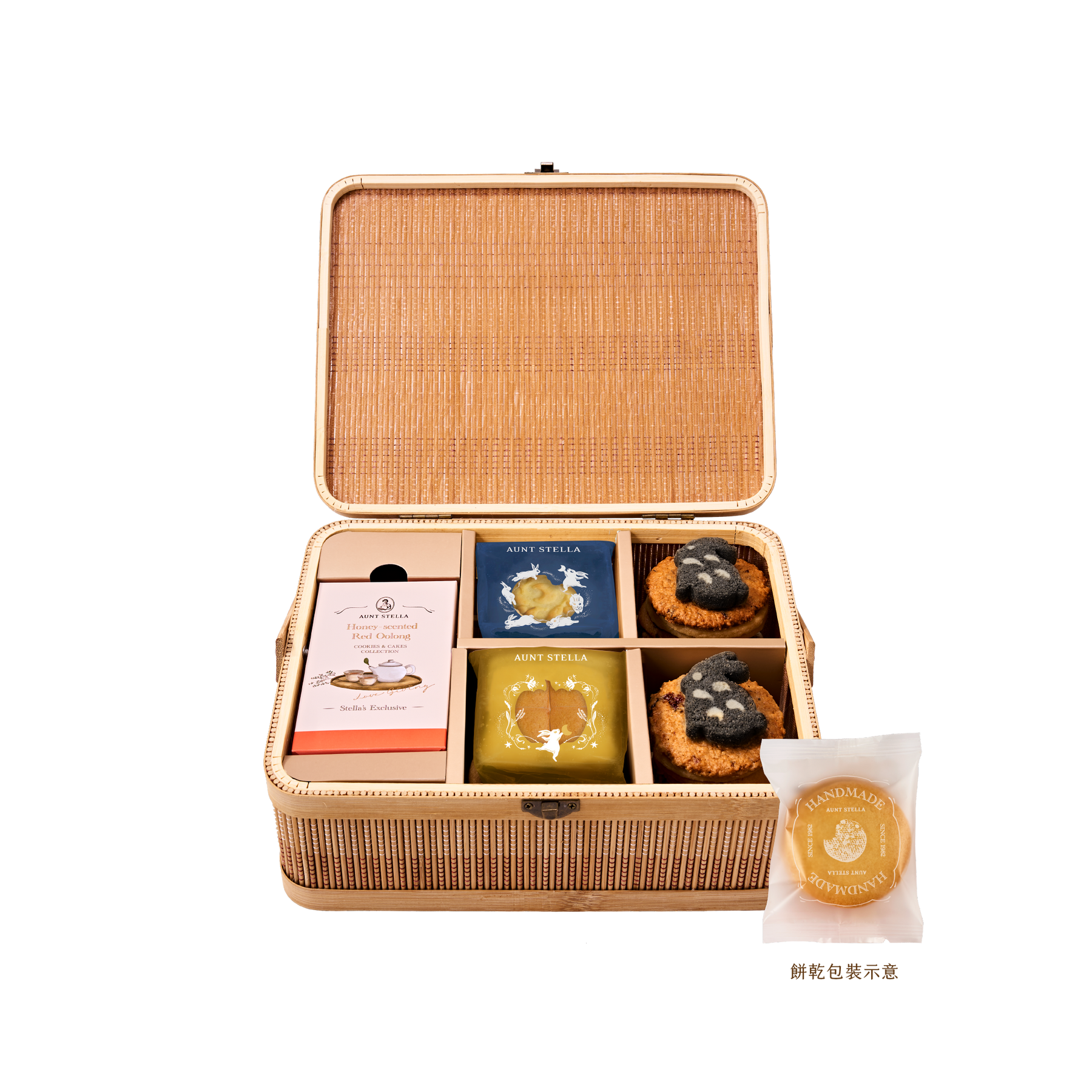以星空為主題的夢幻禮盒設計,內含四款不同口味的精緻糕點。每一款都經過精心調製,口感層次豐富,包裝設計充滿浪漫氛圍,特別適合送給重視美感與品味的朋友。