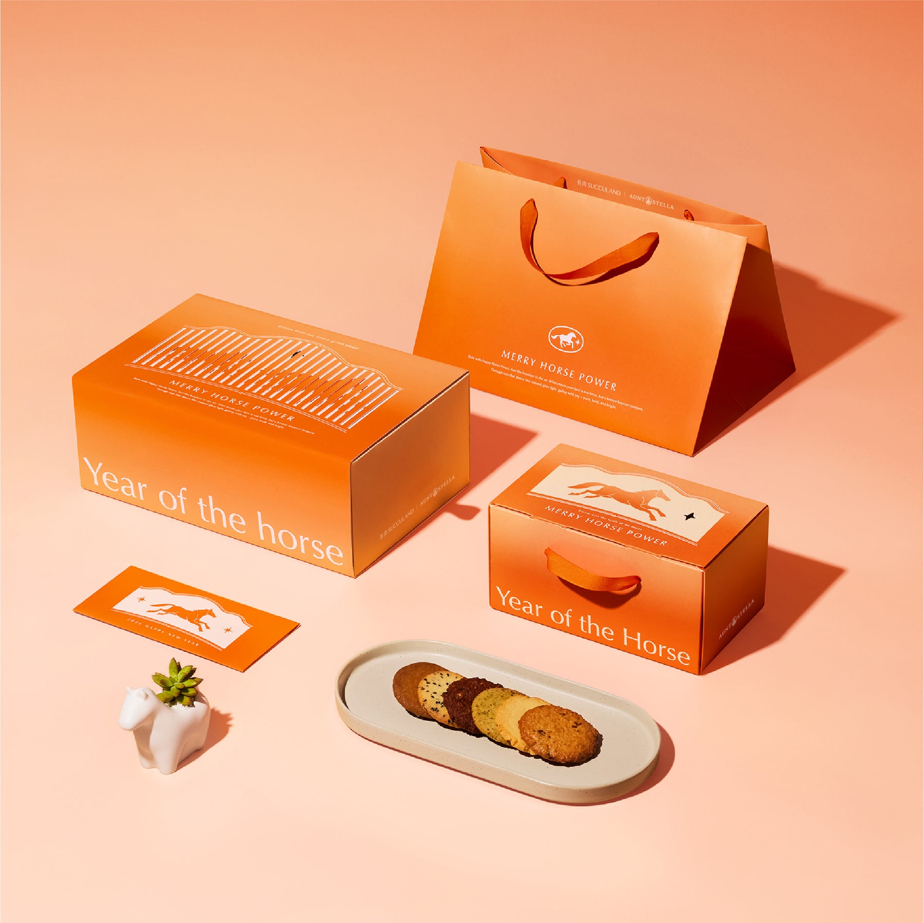 but. we love butter推出馬年新年禮盒,包裝以鮮明色彩與馬年圖騰呈現濃厚節慶感。禮盒內含招牌檸檬蛋糕夾心、奶油餅乾等多款人氣商品,使用法國頂級奶油製作,口感綿密細緻,奶香濃郁。包裝設計跳脫以往極簡風格,改以喜氣繽紛色調迎接新春,適合送給甜點愛好者或作為下午茶伴手禮。