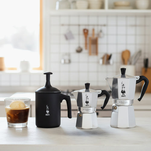 • 專業拿鐵組 經典摩卡壺+手打奶泡器 多尺寸
