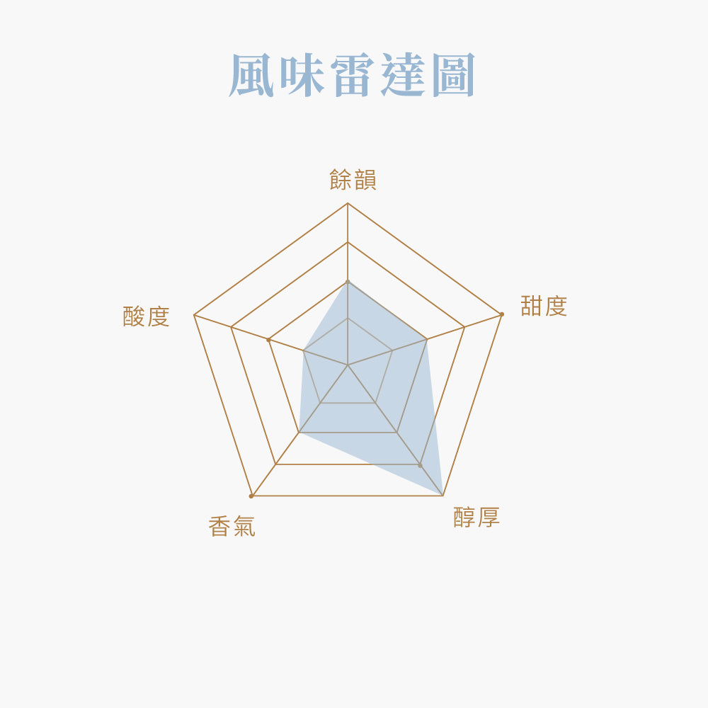 - 口感醇厚,還有百合茉利花香、藍莓水果風味四溢,尾韻巧克力及堅果草本,兼以淡淡酒香