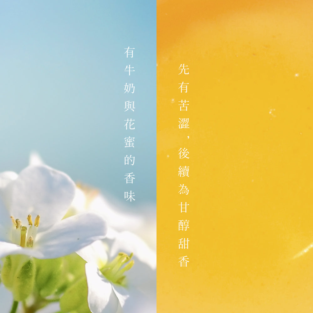 - 絲滑柔順,淡淡奶香與花香交織,入口甘潤回味悠長。